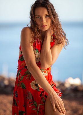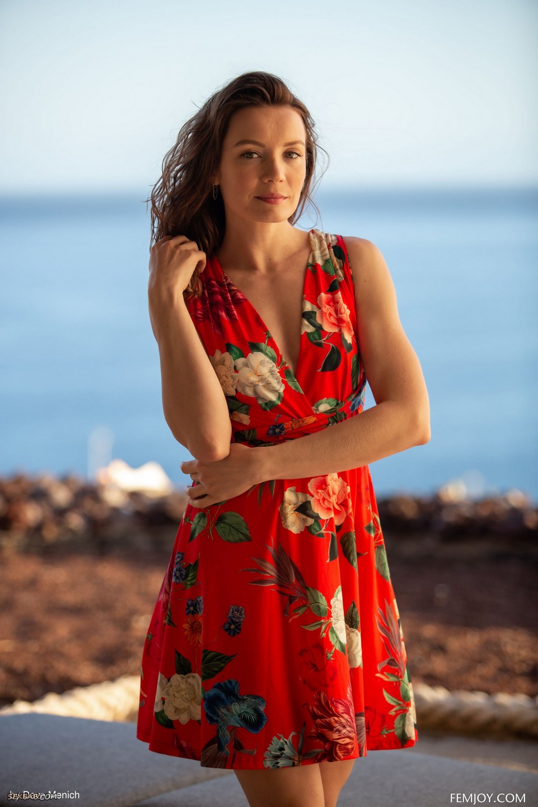Описание: Страстно сорвав с себя яркое красное платье, голая женщина с плоскими сиськами и маленькими острыми сосками чувственно ласкает руками свое горячее тело и, извиваясь перед камерой в самых возбуждающих позах, интригующе засвечивает мельком между ножек свою бритую письку.