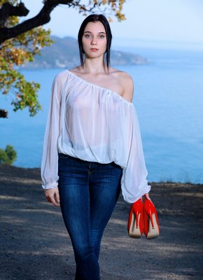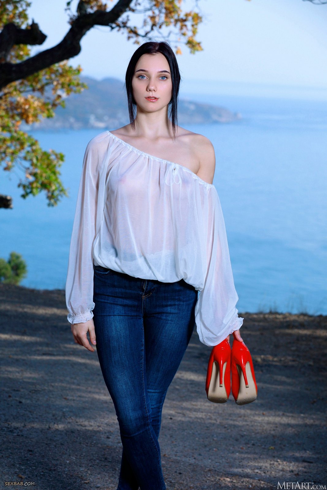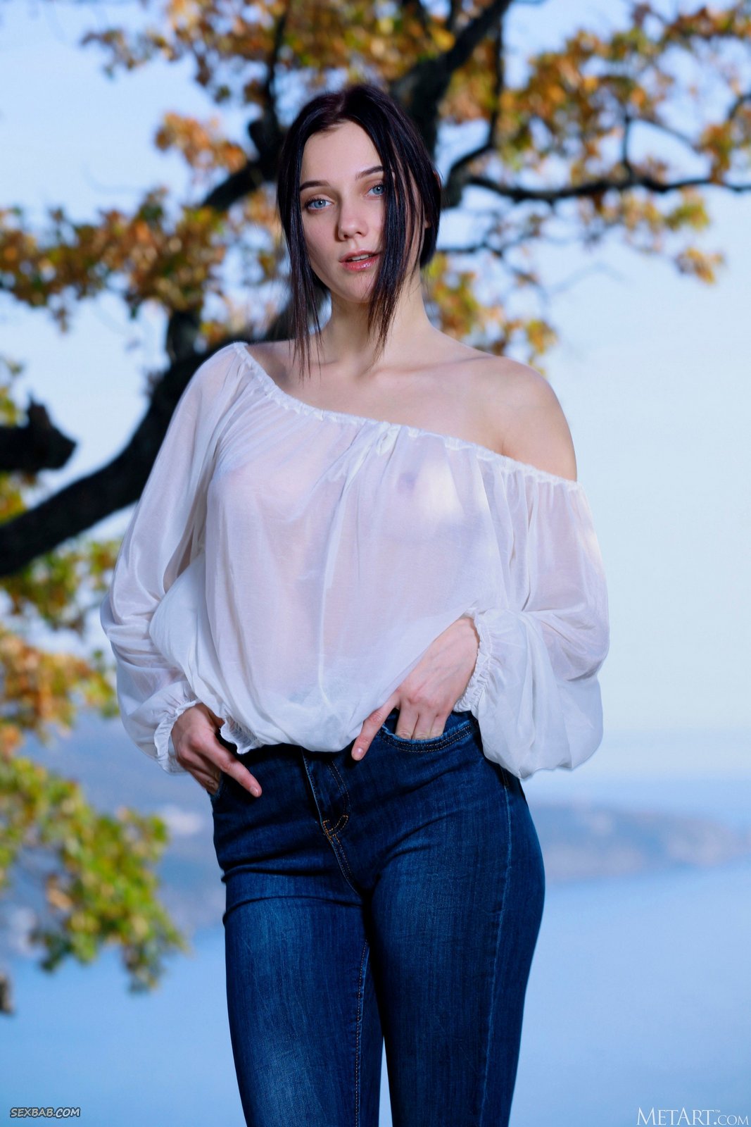 Описание: Симпатичная молодая брюнетка в обтягивающих джинсах и прозрачной кофточке медленно сняла с себя всю одежду и открыто показала свою красивую упругую попочку. Затем стройная детка с миниатюрными титечками развратно встает перед камерой в позу раком и во всей красе раскрывает гладкую промежность с нежной розовой киской.