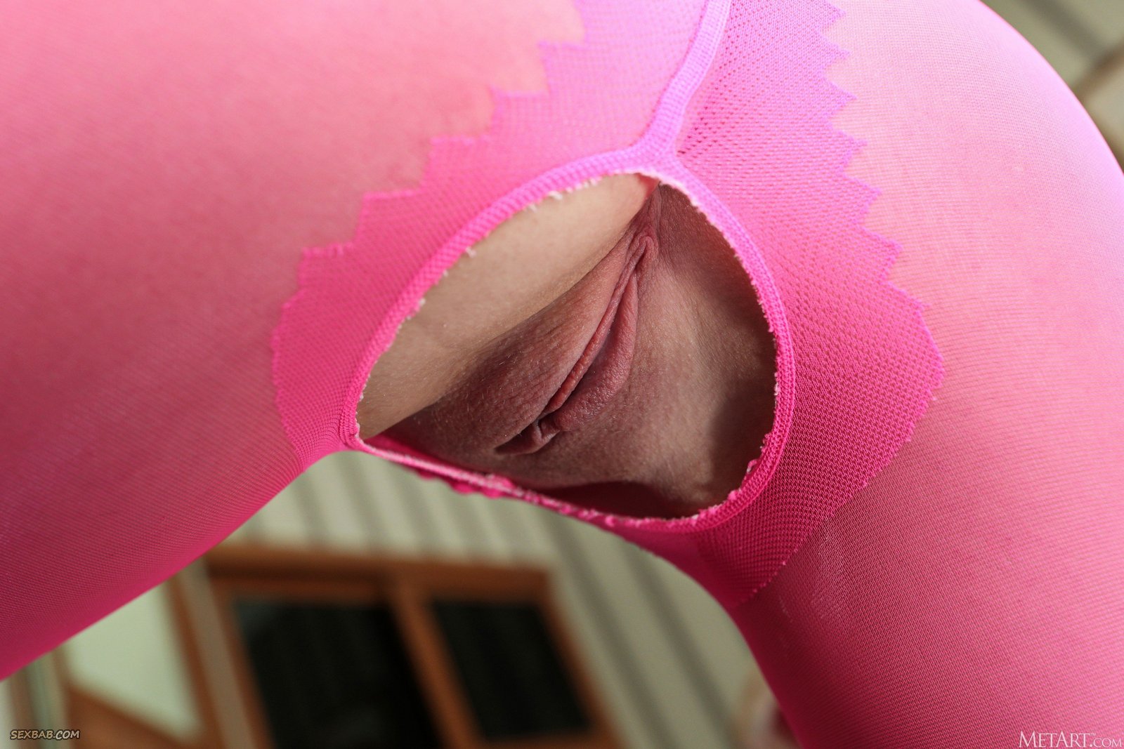 Описание: Кокетливо сжимая руками свои натуральные упругие сиськи, миленькая молодая скромница в розовых колготках бесстыже раскрыла перед нами свою голую промежность и через большую дырку засветила на камеру свою бритую розовую письку с узкой влажной щелочкой.
