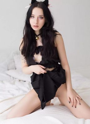 Описание: Медленно спустив с красивой упругой попки черные трусики, гибкая развратная кисуля в мини юбке возбуждающе прогнулась в постели раком и показала между стройными бедрами свою бритую пухлую писечку, нетерпеливо выпячивая ее как можно ближе к камере.