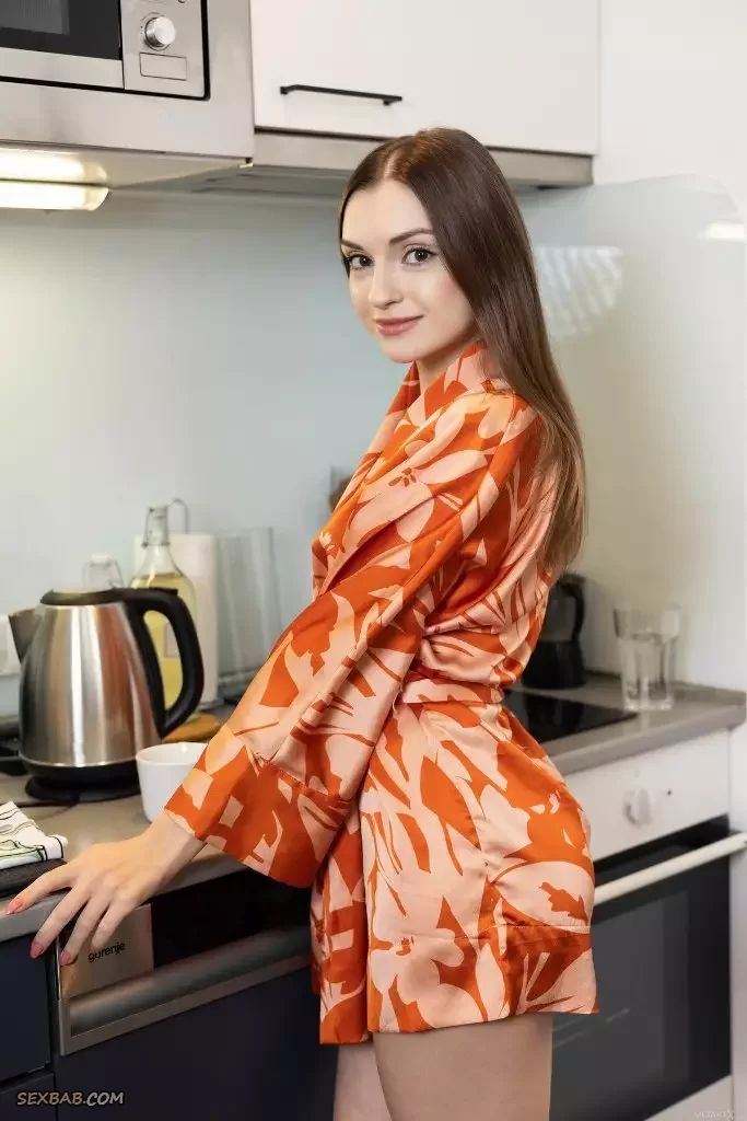 Описание: Молодая сексуальная жена в шелковом халате страстно распахнула его, оголив перед нами свое стройное тело, и на показ ласкает свою бритую письку шаловливыми пальцами. Развалившись на диване, горячая дамочка с натуральными сиськами похотливо тычется как модно ближе к камере своей раскрытой промежностью и мельком засвечивает на лобке пушистую возбуждающую прическу.