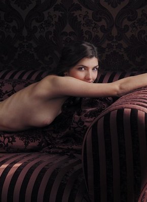 Описание: Полностью обнаженная обаяшка с накрученными локонами, устроившись на диване и попивая воду, эротично позирует и демонстрирует сексуальное тело с наиболее выгодных ракурсов. Таким образом молодая девушка желает поделиться с нами прекрасными видами и продемонстрировать свою красивую попку, а так же маленькие сиськи с бритой писькой.