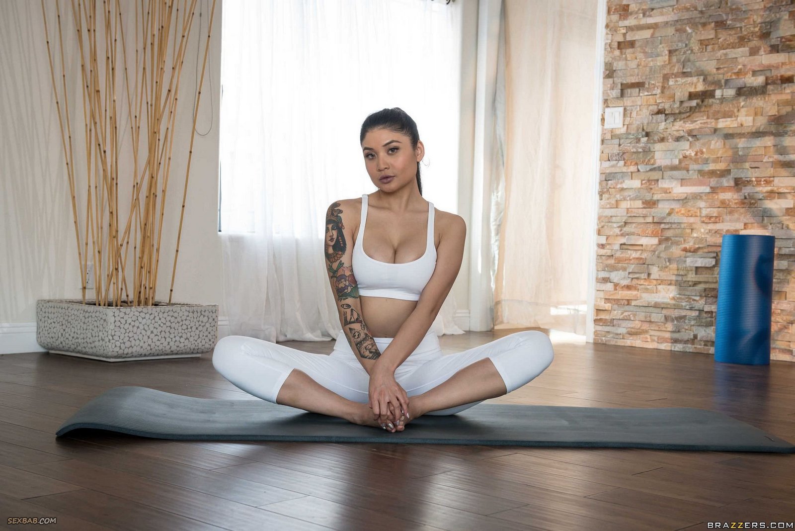 Описание: Аппетитная гибкая брюнетка в обтягивающей майке и лосинах расслабленно занимается йогой на коврике и медленно разделась до гола. Не обращая внимания на свою наготу, сексуальная телка выставила на показ свои круглые силиконовые сиськи и в разных позах задирает ноги, раскрывая перед камерой свою голую бритую промежность.