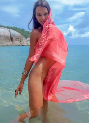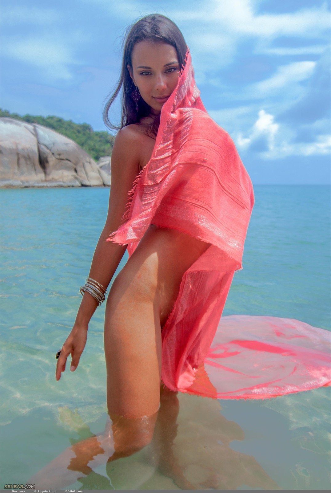 Описание: Прикрываясь тканью и эротично позируя в море, нежная голая девушка с торчащими маленькими сиськами и возбужденными сосочками ощущала от происходящего удовольствие. Плавая, стройняшка с сексуальным телом порой делала акцент на мокрой письке с интимной прической.