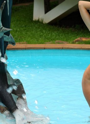 Описание: Сногсшибательная красавица с безумно красивым стройным телом сняла белый купальник и голая купается в бассейне с безупречно прозрачной водой. Вдоволь накупавшись, сексуальная девушка выбирается из бассейна и раздвинув ноги показывает свою влажную киску, но этим не ограничивается и позволяет взглянуть ещё и на упругую попку с красивыми титьками.
