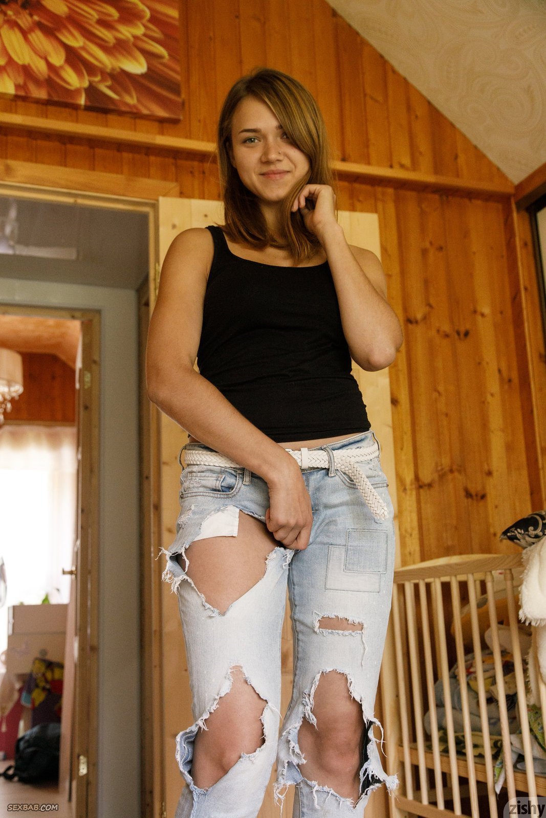 Описание: Привлекательная молодая девка с худенькой фигурой, нарядившись в рваные джинсы и майку принимается эротично позировать дома. Располагаясь на кровати, сексуальная стройняшка немного засвечивала трусики через дырки, ощущая от происходящего возбуждение и удовольствие.
