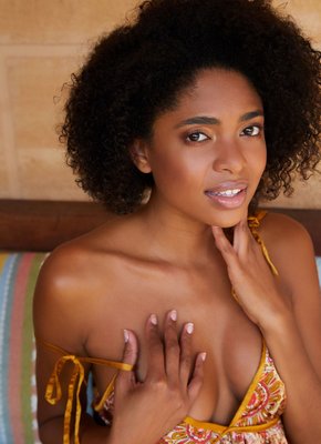 Стройная негритянка хвастается голым телом