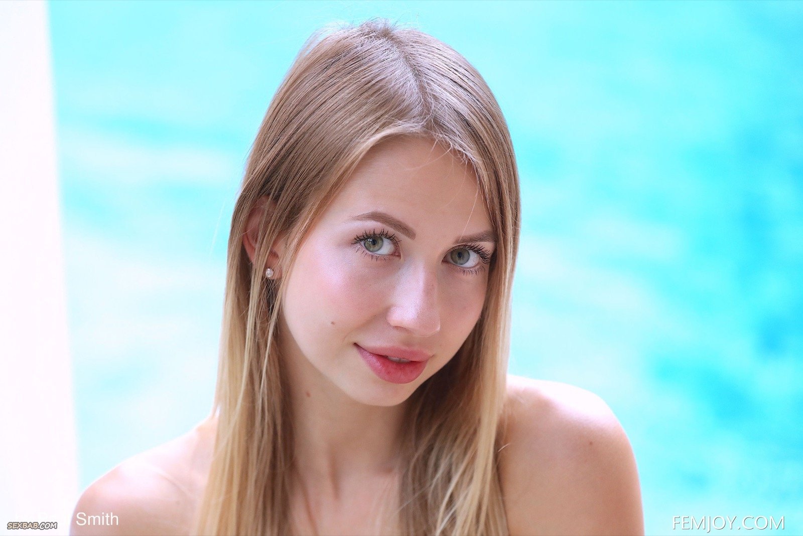 Описание: Очаровательная молодая блондинка с пухлыми губками, откровенно позируя у бассейна, в какой-то момент стянула с себя платье и трусы. Оставшись обнажённой стройняшка с маленькой грудью часто меняет соблазнительные позы, что позволяет нам разглядеть её бритую письку с гладким лобком и упругую попку.