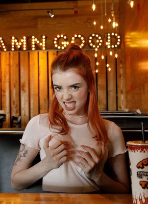 Описание: Надев наиболее короткую юбку и футболку, под которой не было лифчика, молодая рыжая шалунья отправляется на прогулку по городу. Наслаждаясь и даже немного возбуждаясь от происходящего, сексуальная стройняшка порой страстно сжимала натуральные сиськи с набрякшими сосками через одежду, а задирая подол показывала трусики.