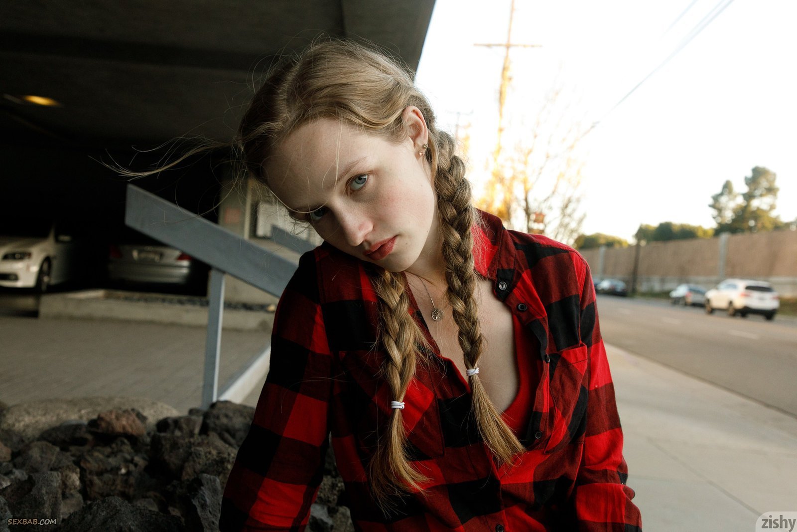 Описание: Перекусив в кафе и отправившись на прогулку, привлекательная девушка в клетчатой рубашке и с волосами завязанными в косички мило улыбается и ощущала желаемое удовольствие, в процессе стараясь засвечивать торчащий сосок на натуральной груди. Параллельно сексуальная милашка так же демонстрировала плоский животик.