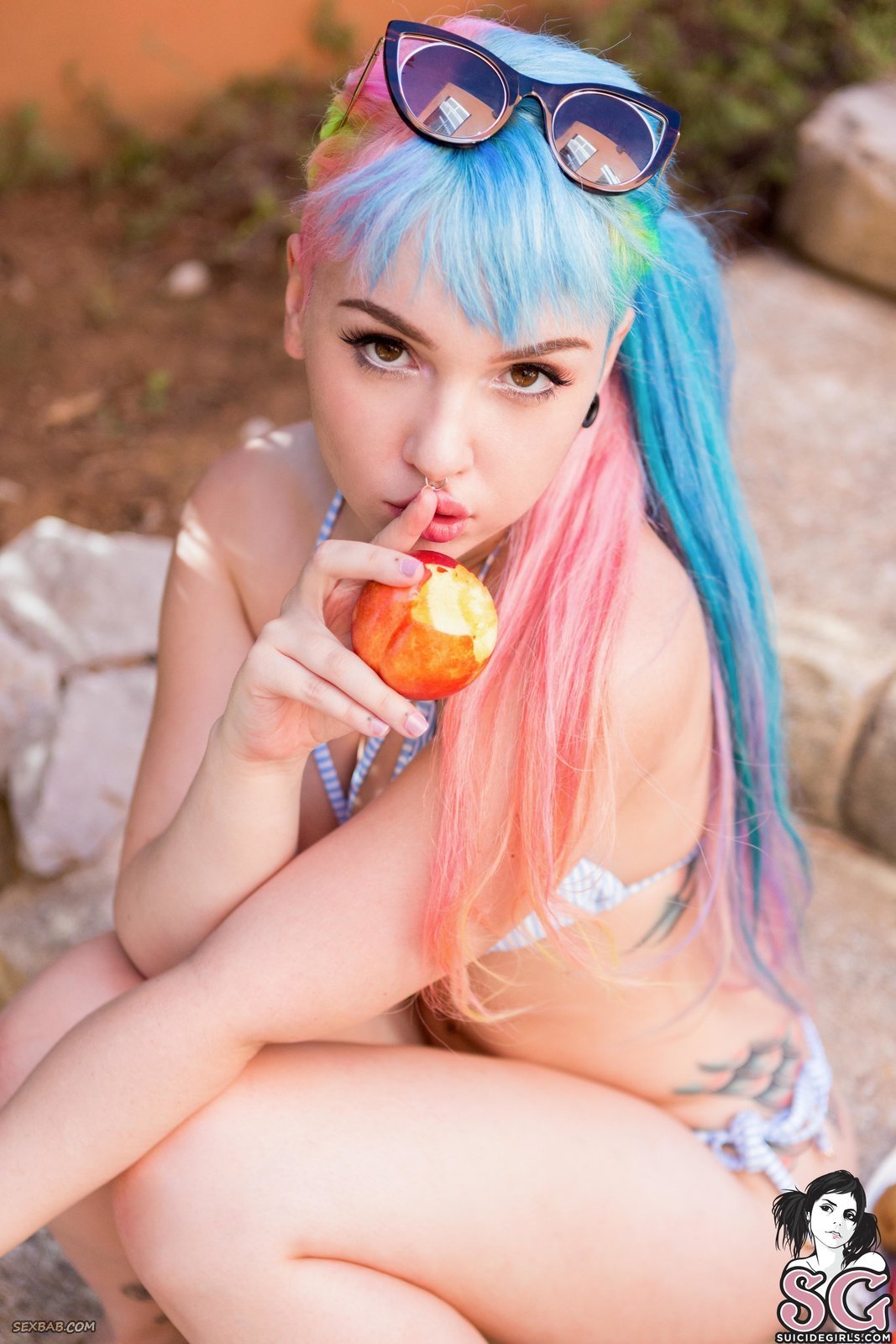Описание: В жаркий день так хочется прохлады, вот и эта яркая девица с аппетитной попкой на камеру снимает с себя бикини и начинает сексуально есть свежие сочные фрукты. Необычная красота молодой девушки притягивает все взгляды, особенно когда она чувственно трясет своими натуральными упругими сиськами.