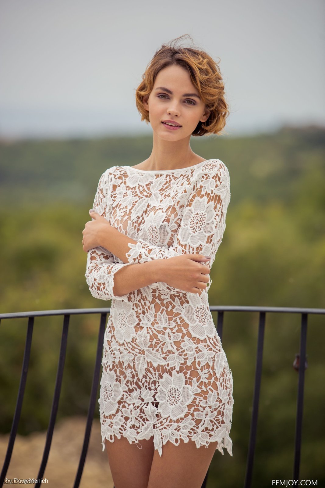 Описание: Оказавшись на балконе, худощавая милашка грациозно подняла руки вверх и сняла белое кружевное платье, сразу же начиная чередовать в обнаженном виде разные возбуждающие позиции. Трогая маленькую грудь с торчащими сосочками девушка раздвигала промежность и демонстрировала бритую письку с гладеньким лобком, после прогибаясь раком и выставляя попочку.