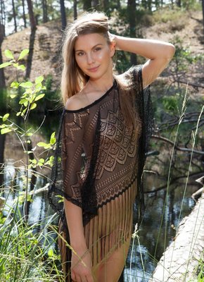 Описание: Очаровательная девушка, прогуливаясь в лесу, уже спустя несколько минут раздевается до гола и демонстрирует сексуальное тело, старательно чередуя разные возбуждающие ракурсы. Перебираясь обнаженной по бревну через речку, стройняшка подробно показывает маленькие сиськи и бритую письку.