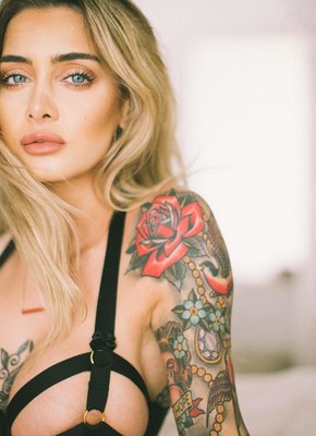 Грудастая блондинка исколотая татухами