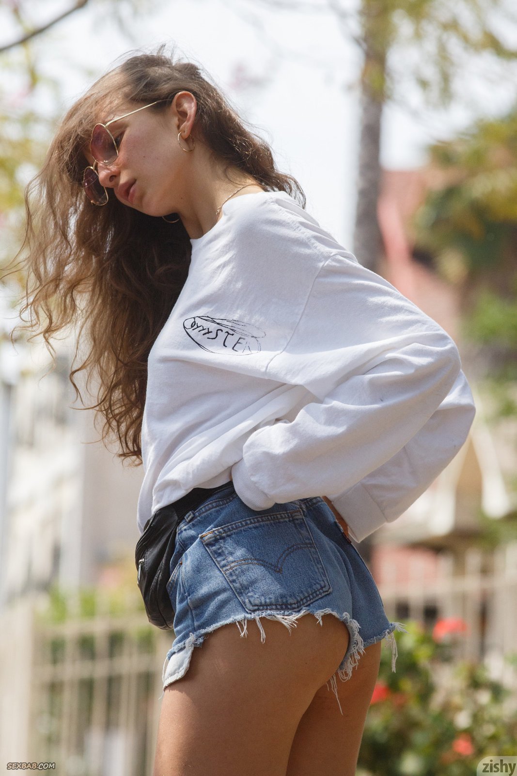 Описание: Подышав свежим воздухом на улице и вернувшись домой, очаровательная развратная девушка сменила коротенькие шортики на возбуждающий боди и начала позировать полуголая. В процессе молоденькая крошка закрывалась в ванной комнате и прогнувшись раком выставила на показ сочную подкаченную попку, а так же показала нам свои натуральные сиськи.