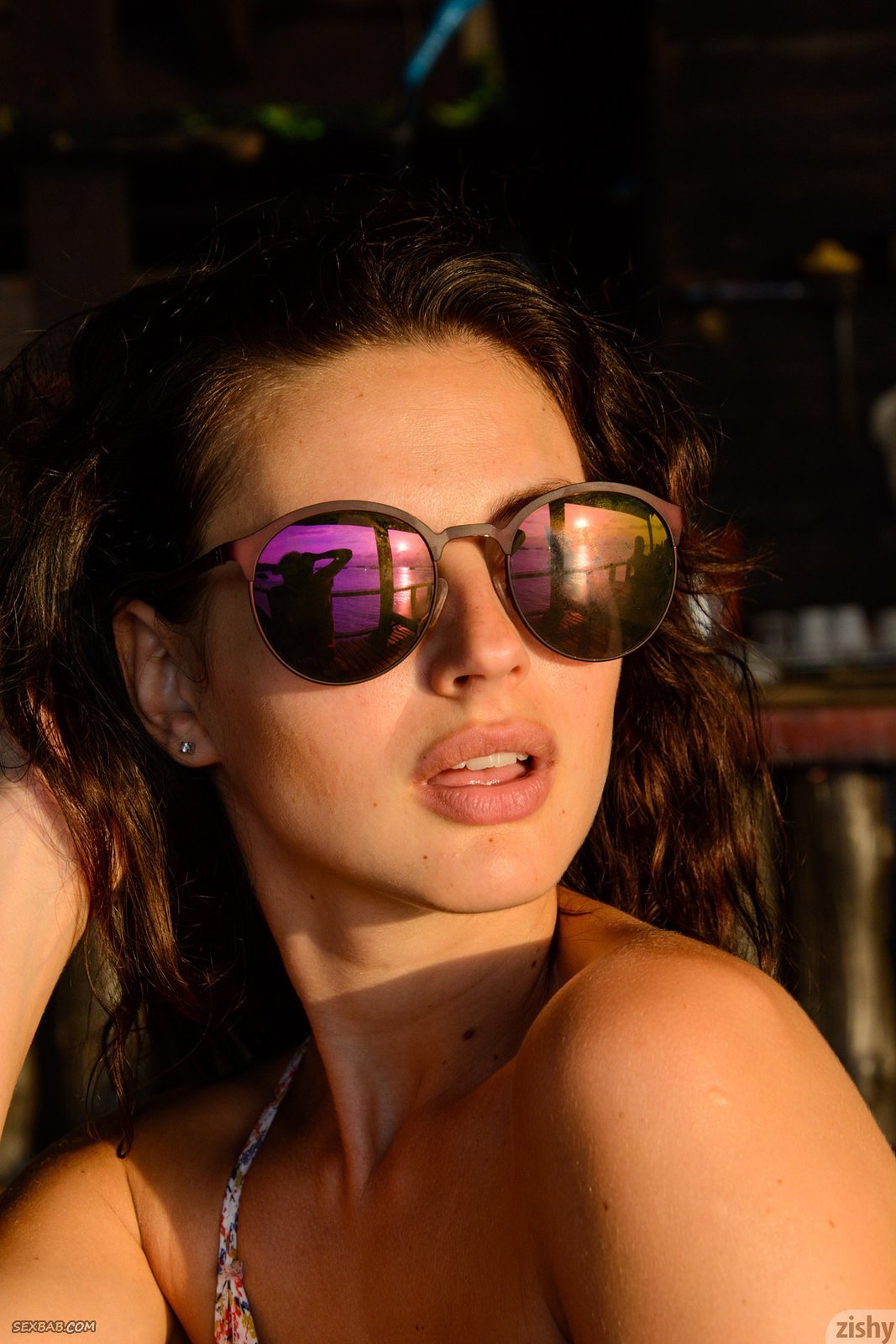 Описание: Начав позировать в платье и очках, сексапильная девушка возбуждающе приоткрывала ротик, а переодевшись в купальник отправилась на пляж, где продолжая начатое нежилась в воде. В процессе очаровательная крошка чередует разные позиции, а под конец полностью оголяется, засвечивая маленькие сиськи с волосатой писькой.
