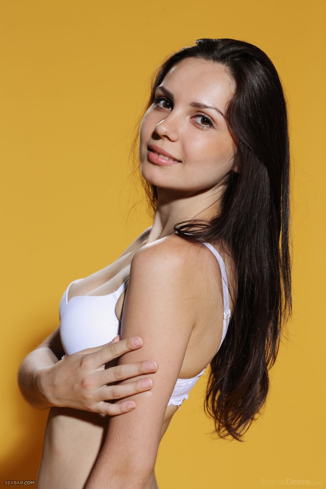 Описание: Привлекательная модель с упругой маленькой грудью и возбужденными торчащими сосками, медленно скинув с себя трусики и лифчик, эротично позирует в студии. Мило улыбаясь, стройняшка так же подробно засвечивает бритую письку с гладким лобком, а поворачиваясь спиной демонстрирует задницу. В будущем молодая девушка так же присаживалась на стул.