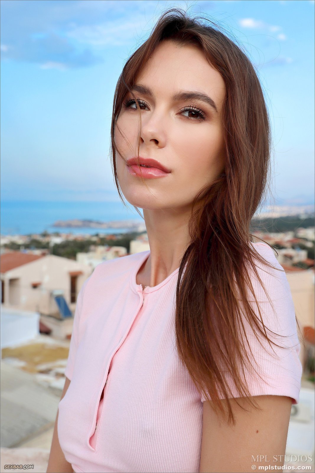 Описание: Начав позировать летним днем на крыше дома, босая девица с длинными ногами в процессе строит глазки и максимально эротично раздевается. Оголившись, сексуальная стройняшка располагается на лавочке и подробно засвечивает маленькие сиськи с попочкой и гладко выбритую письку.