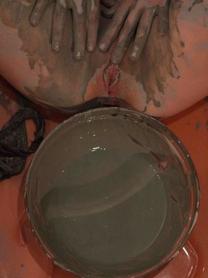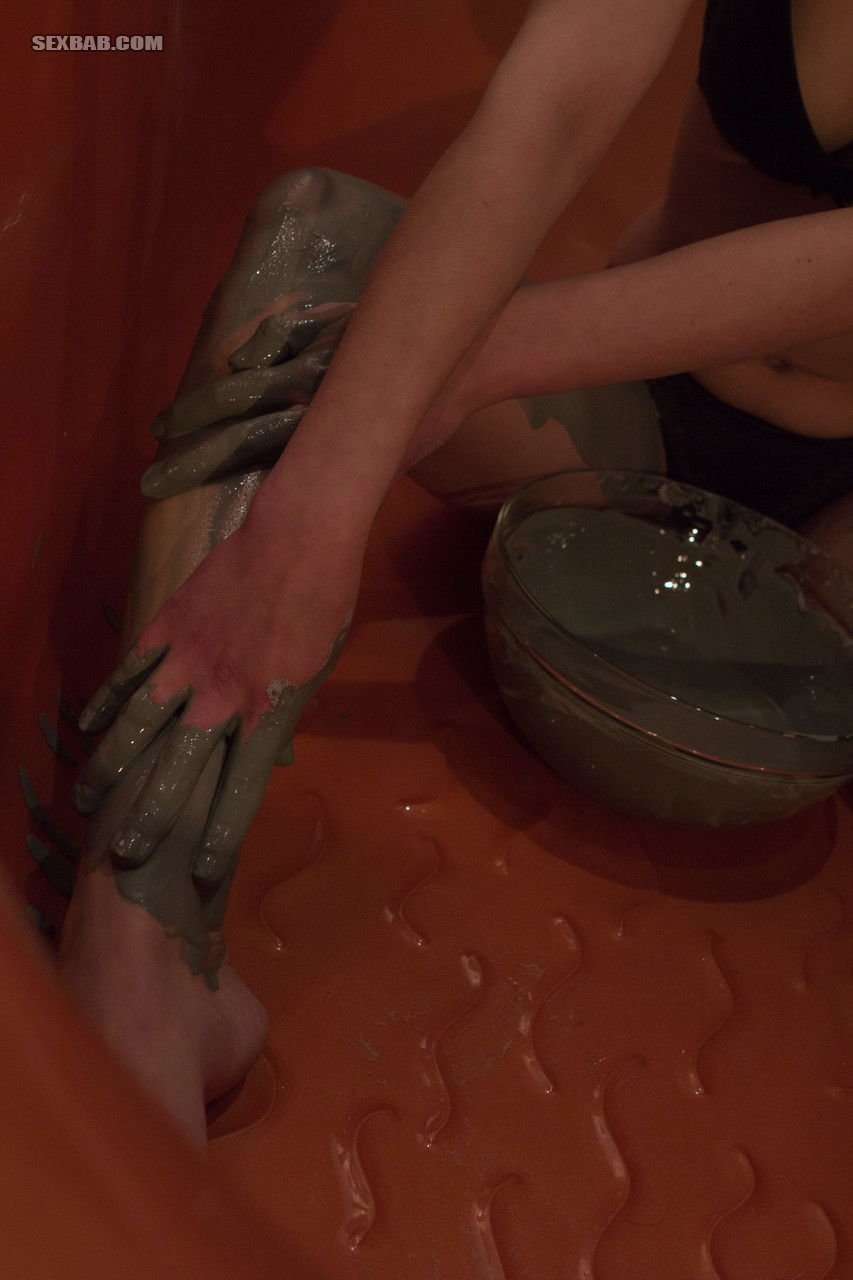 Брюнетка залезла в ванную и позируя купается голая в грязи (20 фото)